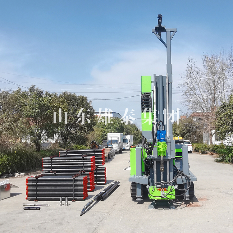 山東雄泰機(jī)械集團(tuán)自主研發(fā)生產(chǎn)的履帶式全液壓巖心鉆機(jī),我廠技術(shù)人員在現(xiàn)場(chǎng)售后指導(dǎo)施工中。